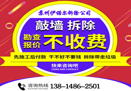蘇州伊諾爾拆除工程有限公司是一家規(guī)模較大,經(jīng)濟實力雄厚的專業(yè)拆除公司,提供室內(nèi)拆除,砸墻,地磚,墻磚,頂,管道,公寓,酒店,辦公樓拆除服務(wù),我們本著誠信經(jīng)營,公平交易的原則,從事家裝,工裝,大型商場拆除,建筑物廠房樓房拆除工程并回收所有舊貨設(shè)備。我們從事拆除行業(yè)多年,具有多年的拆除經(jīng)驗,提供多種建筑的內(nèi)外拆除施工服務(wù),因為專業(yè)性,安全性,可信度高而獲得了客戶的認(rèn)可。